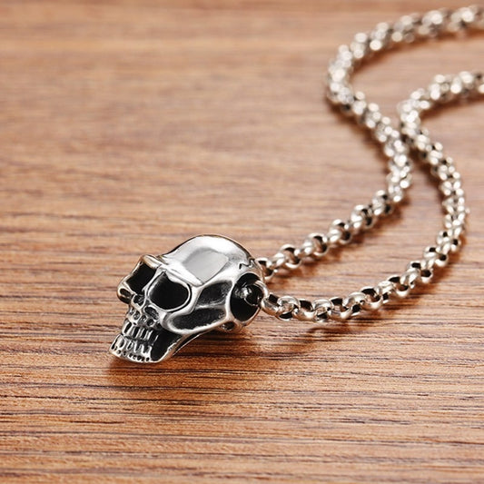 Gothic Skull 925 Sterling Silver Vintage Punk Rock Biker Pendant Necklace