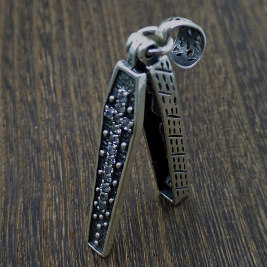 Gothic Open Cross Coffin Skeleton White Cubic Zirconia 925 Sterling Silver Biker Pendant Necklace