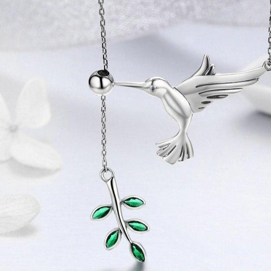 Hummingbird and Olive Branch 925 Sterling Silver Fashion Pendant Necklace