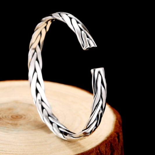 Braided 999 Genuine Silver Retro Open Cuff Bracelet