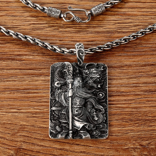 Dragon and Hero Guan Yu 999 Genuine Silver Vintage Pendant Necklace