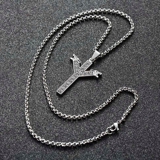 Egyptian Ankh Cross with Snake Pendant and Chain Necklace