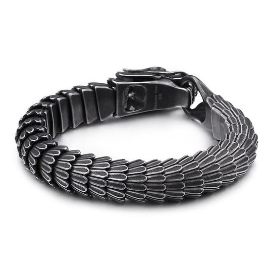 Flexible Matte Black and Silver Dragon Scale Bracelet
