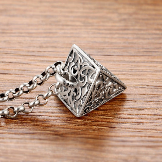 Four God Beasts Pyramid 925 Sterling Silver Vintage Punk Biker Pendant Necklace