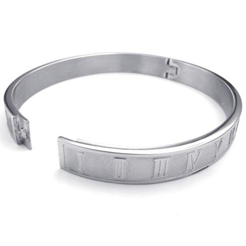 Men Women Stainless Steel Bracelet, Classic Roman Numeral Cuff Bangle, Silver