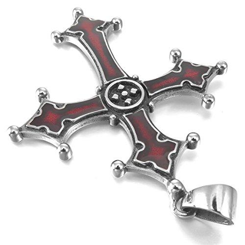 Men's Stainless Steel Enamel Pendant Necklace Silver Tone Red Celtic Medieval Cross -With 22 Inch Chain