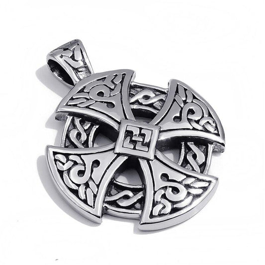 Celtic Sun Cross Black & Silver Vintage Pendant Chain Necklace