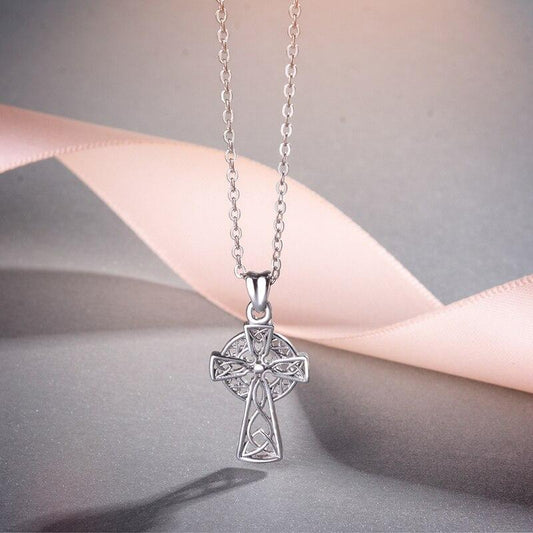 925 Sterling Silver Celtic Cross & Knot Pendant Necklace