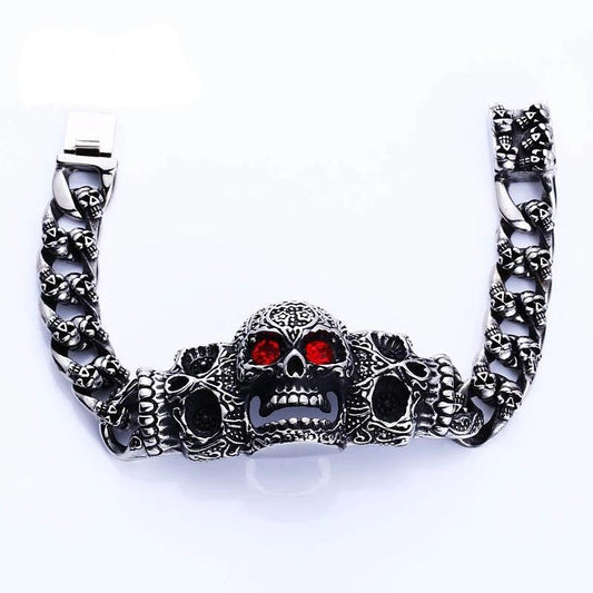 316L Stainless Steel Punk Red Eye Carved Skull Bracelet