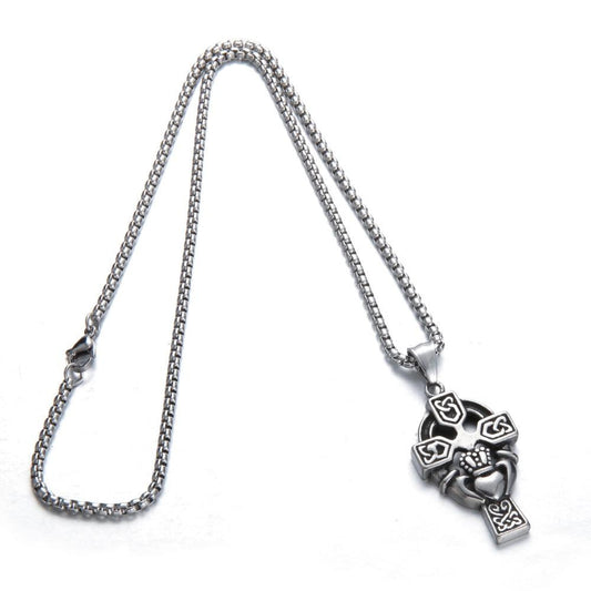 Black & Silver Celtic Knot Cross Claddagh Pendant Necklace