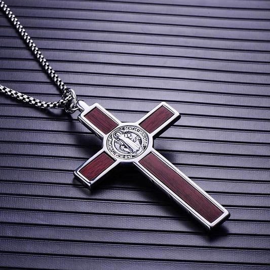 Men's 316L Stainless Steel Wood Cross Pendant Necklace
