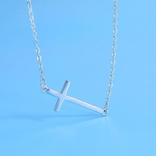 Sideways Horizontal Cross Pendant Necklace