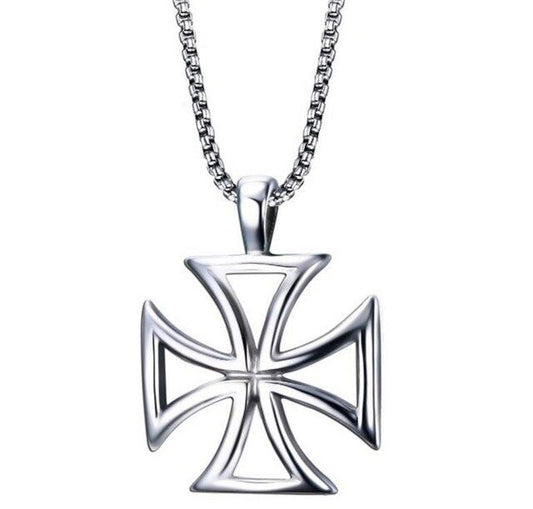 Titanium Steel Cubic Zirconia Cross Pendant Necklace