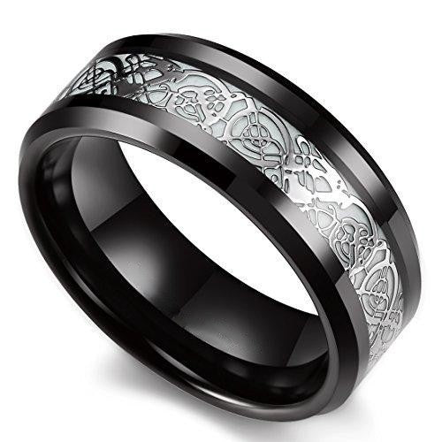 Silver Celtic Dragon Luminous Glow Black Tungsten Carbide Wedding Ring