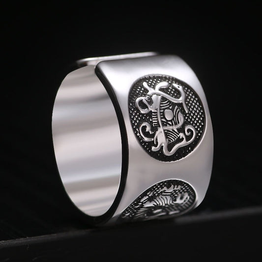 Chinese Four Mythical Creatures 999 Genuine Silver Adjustable Ring
