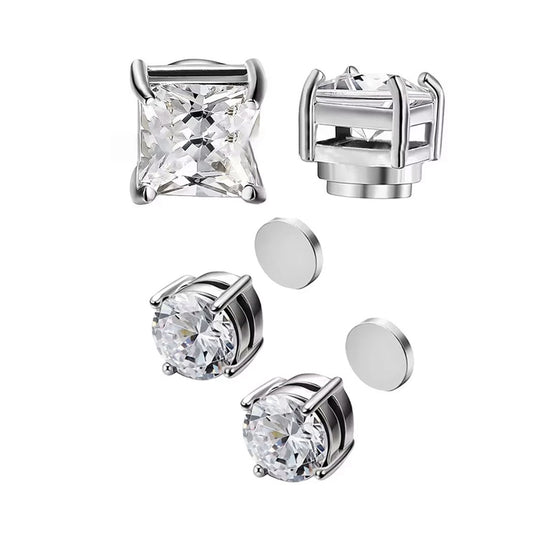2 Pairs Stainless Steel Magnetic Stud Earrings for Men Women Non-piercing CZ 5-8mm