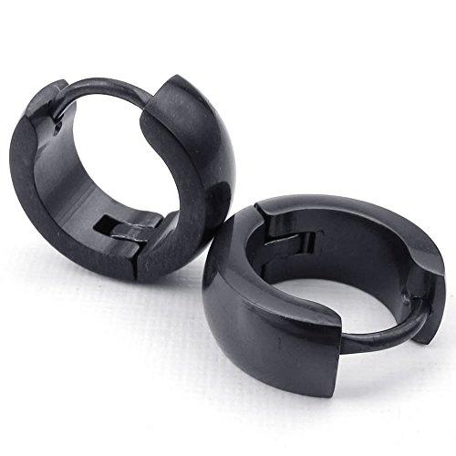 Men Stainless Steel Classic Plain Cambered Stud Huggie Hoop Earrings Set, Black