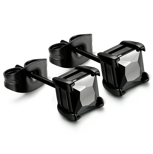 Stainless Steel Men Women Cubic Zirconia Stud Earrings Black Piercing 22G 3-8mm