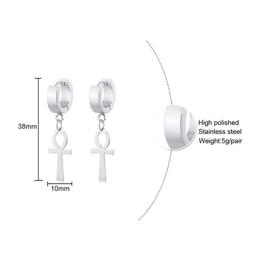 Drop Ankh Egyptian Cross Hoop Earrings in 3 Different Colors