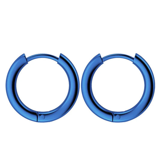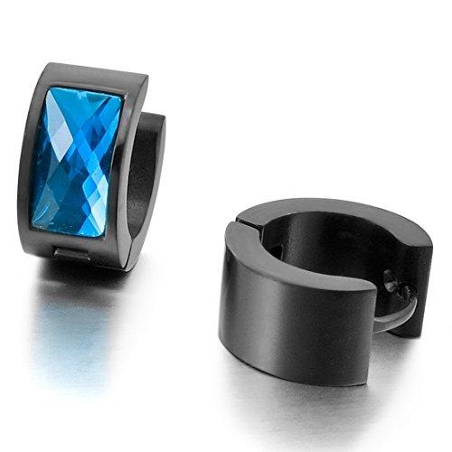 Men's Stainless Steel Stud Hoop Huggie Earrings CZ Black Blue
