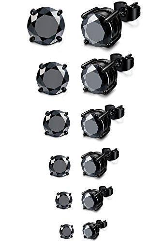 6 Pairs Stainless Steel Men Women Stud Earrings Cubic Zirconia Piercing Black 22G