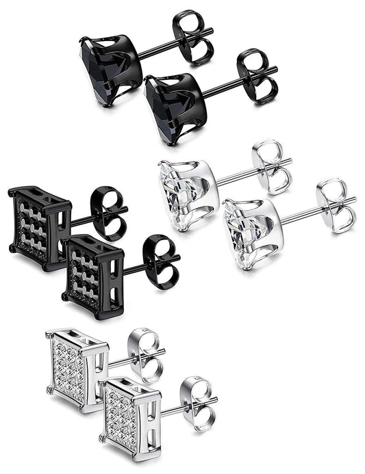 4 Pairs Stainless Steel Stud Earrings for Men Women CZ Earrings 6-8MM