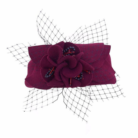 Flower Wool Pillbox Fascinator Hat with Netted Veil