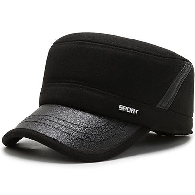 Buckled Thick Warm Solid Color Polyurethane Cotton Tweed Military Hat with Earflaps