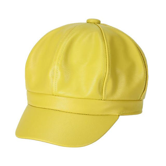 Classy Faux Leather Solid Color Painter Octagonal Hat