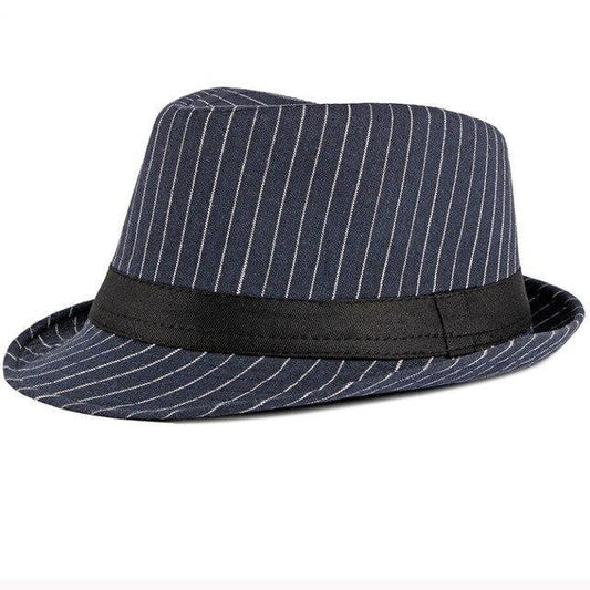 Vintage Short Brim Striped Trilby Hat with Black Hatband