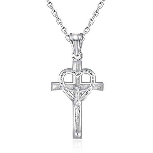 Heart Shaped White Silver Pendant Cross Necklace