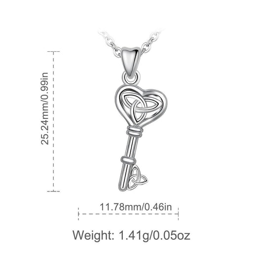 Celtic Trinity Knot Triquetra Key Pendant Necklace 925 Sterling Silver