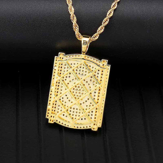 Rhinestone-Studded Gold-Plated King Crown Bling 316L Stainless Steel Hip-hop Pendant Necklace
