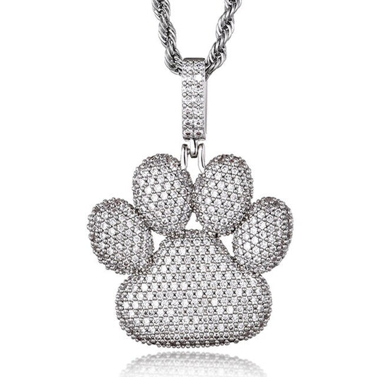 Cubic Zirconia Studded Bear Paw Bling Hip-hop Pendant Necklace