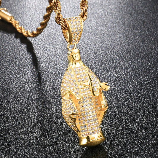 Cubic-Zirconia-Studded Gold-Plated Virgin Mary Bling Hip-hop Pendant Necklace