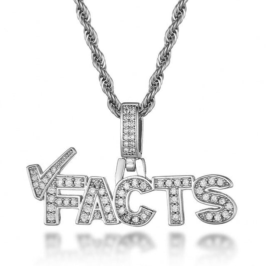 Cubic Zirconia Studded "Facts" Bling Hip-hop Pendant Necklace