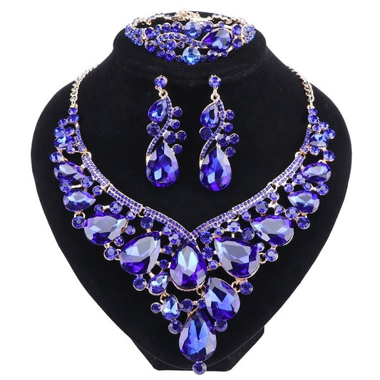 Crystal Necklace, Bracelet, Earrings & Ring Wedding Statement Jewelry Set