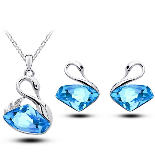 Austrian Crystal Swan Necklace & Earrings Fashion Jewelry Set