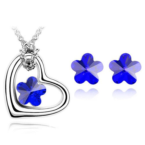 Crystal Flower Heart Necklace & Earrings Fashion Jewelry Set