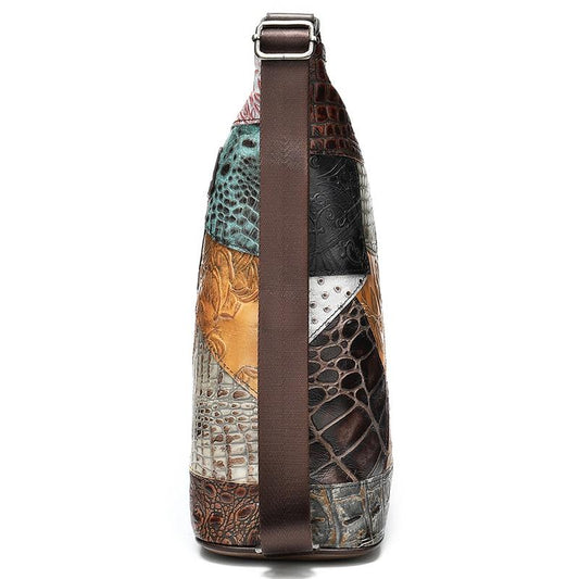 Convertible Bohemian Style Flowers Multi-Color Pattern Genuine Leather Sling Bag & Backpack