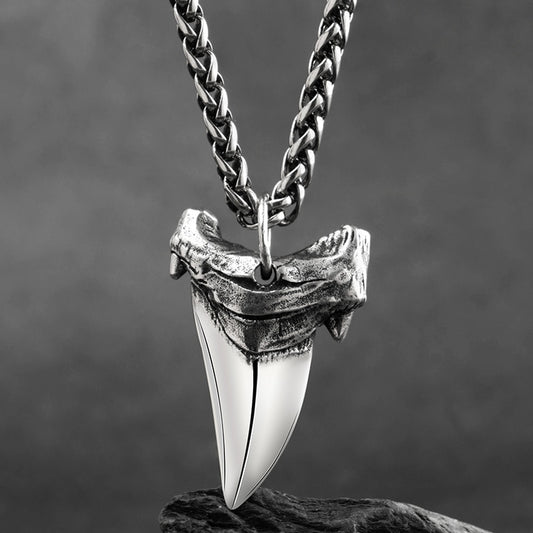 Stainless Steel Box Chain Shark Rock Punk Pendant Necklace