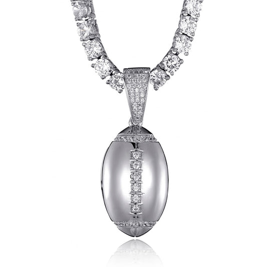 Cubic-Zirconia-Studded Football Hip-hop Pendant Necklace