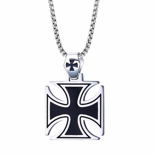 Stainless Steel Polished Knights Templar Cross Pendant with Chain Necklace