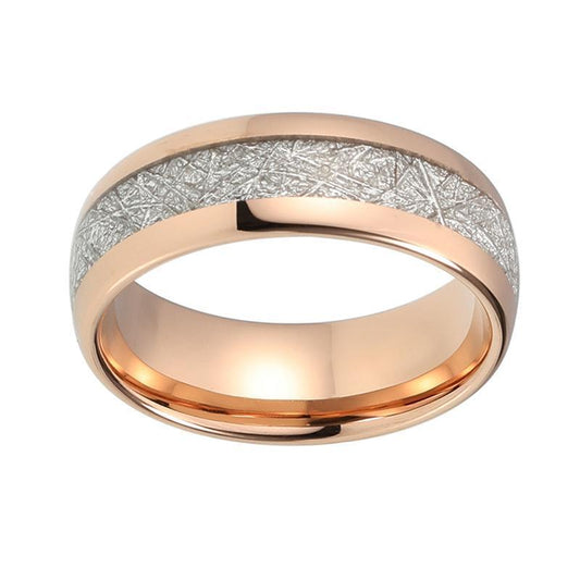 Rose Gold Meteorite Inlay Tungsten Carbide Ring
