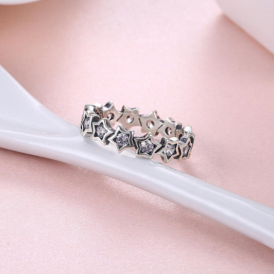 Stars with Cubic Zirconia 925 Sterling Silver Romantic Design Ring