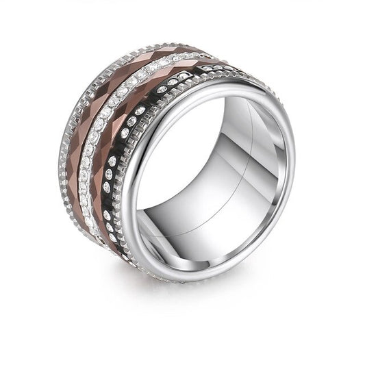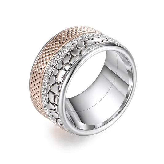 Stainless Steel and Copper Cubic Zirconia, Rose Gold, and Silver Stackable, Rotatable, and Interchangeable Ring