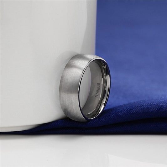 8mm Brushed Domed with Polished Inner Band Silver-Plated Titanium Fashion Wedding Band
