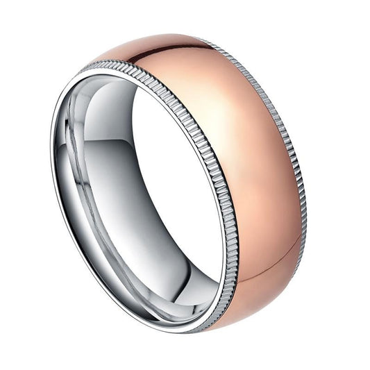 8mm Polished Domed with Grooved Edges Rose-Gold-Plated Titanium Fashion Wedding Band