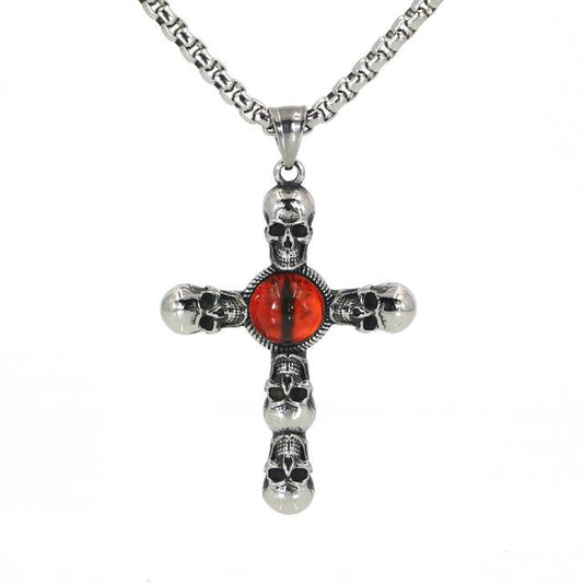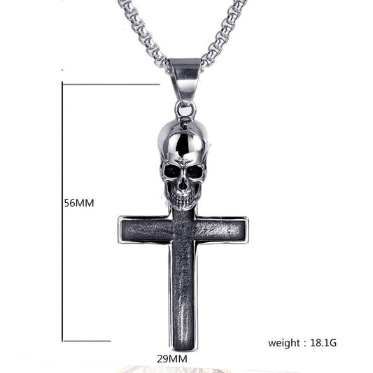 Jewelry Men Gothic Biker Skull Motorcycle Stainless Steel Pendant Necklace, Cross