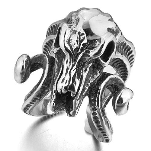Men's Stainless Steel Ring Silver Tone Black Goat Horn Skull